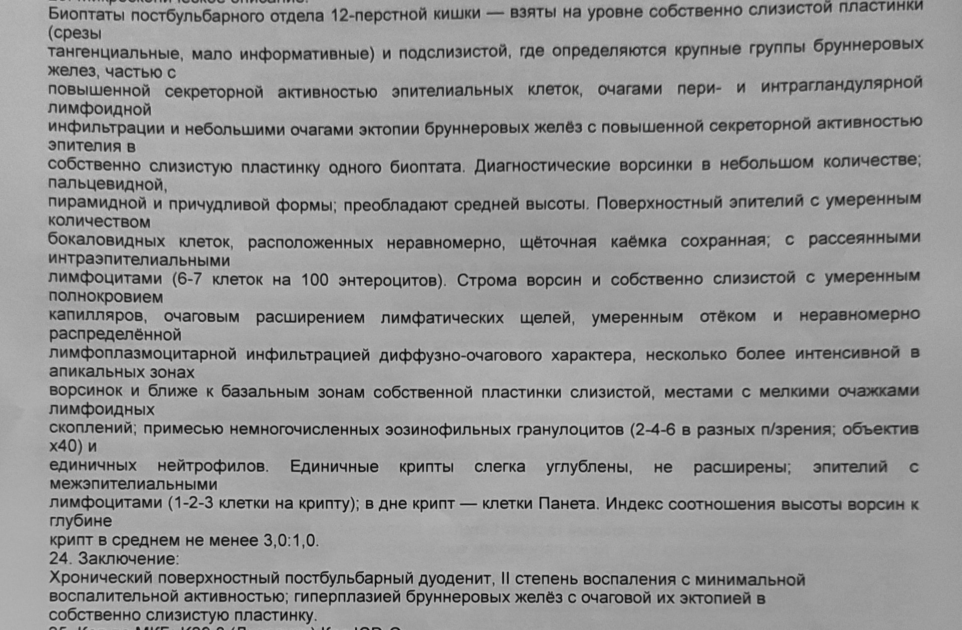 Сопутствующие заболевания: к29.3 Хронический гастродуоденит (Поверхностный гастрит с геморрагиями в фундальном отделе. Поверхностный бульбит. Поверхностный дуоденит. Доудено-гастралтный рефлюкс) HP(-)